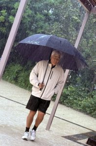 hier zeigte sich die Unberechenbarkeit des Outsidesports Golf. Hatte sich doch heimlich eine zusätzliche Spielerin namens DANA auf die Startliste gemogelt, die genau passend zu Abschlagzeit erschien. Dana ist die meterologische Bezeichnung für das uns allen bekannte Wetterphänomen GOTA FRIA, das jeweils zum Frühjahr und Herbst die Küste Spaniens heimsucht. Und dieses Mal traf es uns ganz besonders. Es war von der Spielleitung zwar eine Schlechtwetterfront für den Spieltag angekündigt, aber mit solch einer Heftigkeit hatte wohl keiner gerechnet. Hatte es auf der Hinfahrt vereinzelt getröpfelt, löste der Himmel unmittelbar bei Erreichen des Clubhauses seine Schleusen, und zwar in solch einer Heftigkeit, dass 15 Minuten lang nicht ans Aussteigen aus dem Auto zu denken war. Dann das erste Nachlassen, Entladen des Golfgepäcks, die ersten Unentwegten wagten den Gang zur Drivingranch, aber es war nur eine kurze Unterbrechung, die zum halbwegs trockenen Weg ins Restaurant reichte. Danach gab der Himmel alles was er hatte, ein Gewitter zog auf, kurzum: selbst für die größten Optimisten
