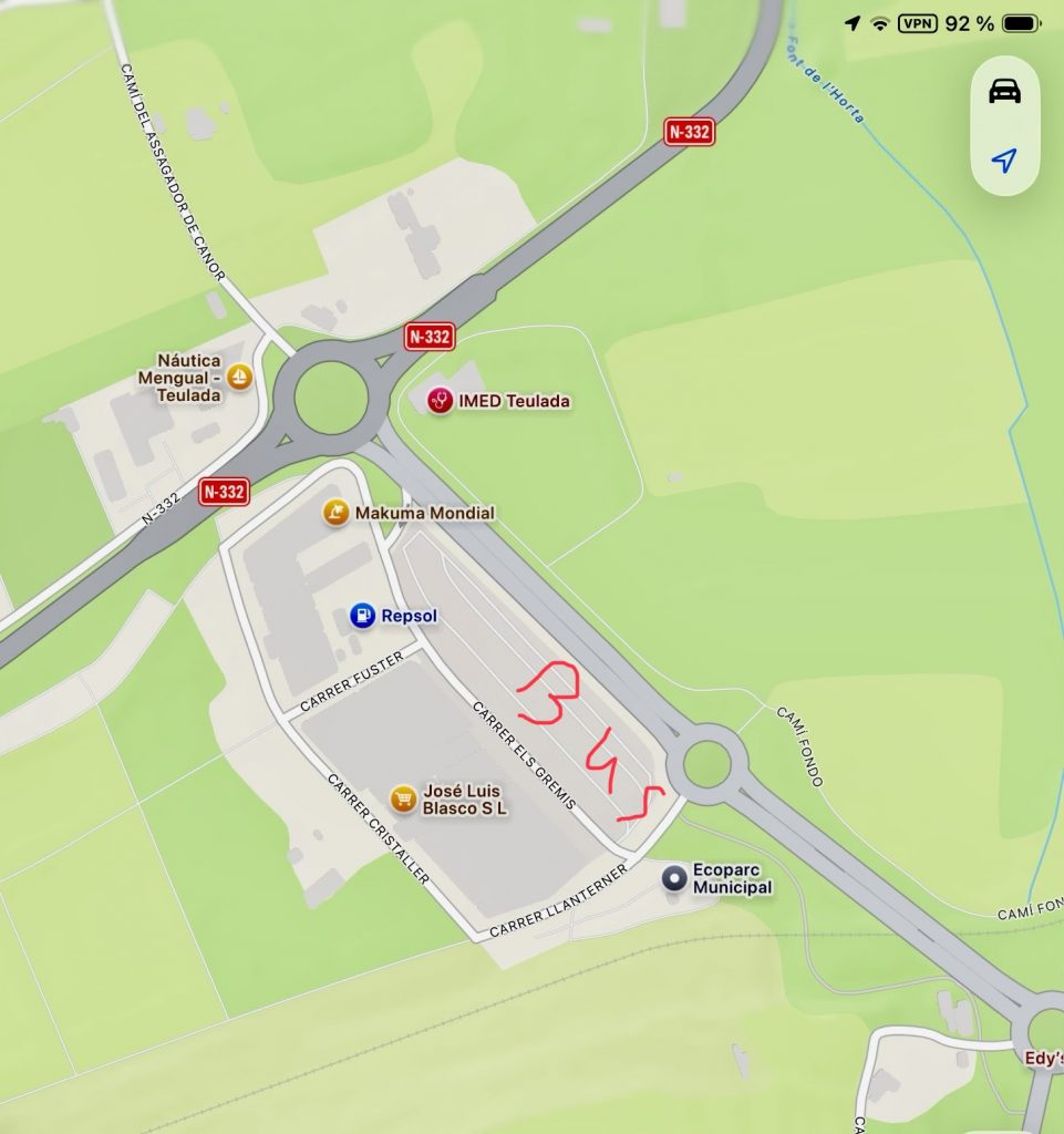 Der Bus fährt am 7.4. um 8:00 Uhr in Teulada ab. Alle Teilnehmer sollen spätestens um 7:45 auf dem Parkplatz in Teulada (siehe Lagebild) sein, damit der Bus pünktlich abfahren kann.